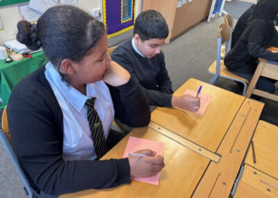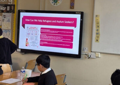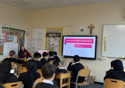 We discussed refugees and asylum seekers, why they need our support, and took part in an activity where we acted out emotions for a partner to guess, helping us understand how it might feel to arrive in the UK without speaking English. This links closely to Catholic Social Teaching, especially the principles of Human Dignity and Solidarity, which call us to recognise every person as valued and to stand with those in need.